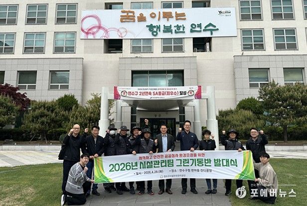 [ 포에버뉴스 김경순 기자 ] 연수구시설안전관리공단은 4월 28일 연수구청 한마음 잔디광장에서 쾌적하고 안전한 공공청사 환경 조성을 위한 ‘2026년 시설관리팀 그린기동반 발대식’을 개최했다.