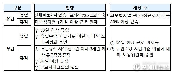휴업, 휴직 등 유형별로 달리 정하고 있는 고용유지지원금 지원 요건은 ‘근로를 제공하지 아니하는 조치’로 통일된다. 복잡한 신청 요건을 단순화하여 현장의 이해와 활용도를 높일 수 있을 것으로 기대된다.