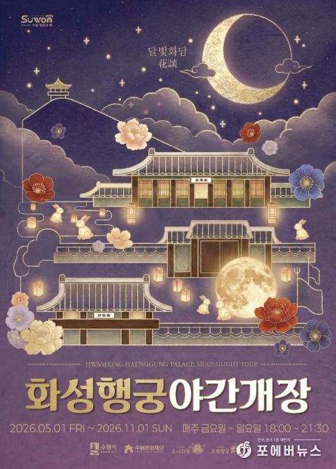 [ 포에버뉴스 김경순 기자 ] 화성행궁 야간개장 ‘달빛화담, 花談’이 5월 1일 시작된다. 11월 1일까지 매주 금·토·일요일에는 저녁 9시 30분까지 화성행궁을 관람할 수 있다.