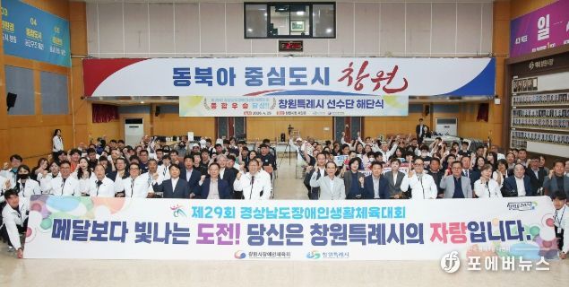 [ 포에버뉴스 사공선 기자 ] 창원특례시는 제29회 경남장애인생활체육대회에서 종합우승을 차지한 창원시 선수단의 해단식을 29일 창원시청 시민홀에서 개최했다.