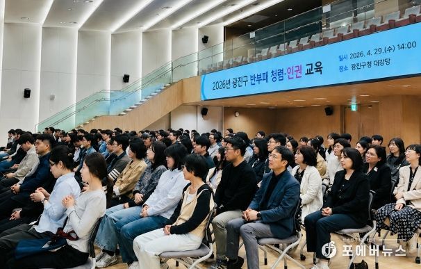 [ 포에버뉴스 김경순 기자 ] 광진구가 4월 29일 광진구청 대강당에서 공직윤리 확립과 상호 존중하는 조직문화 조성을 위한 ‘반부패 청렴·인권 교육’을 실시했다.