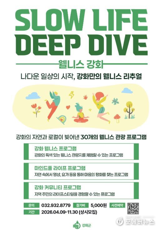 [ 포에버뉴스 김경순 기자 ] 강화군은 올해 처음으로 자연과 지역 고유의 라이프스타일을 기반으로 한 웰니스 관광 프로그램을 본격 운영하고, 참여자 모집에 들어갔다.