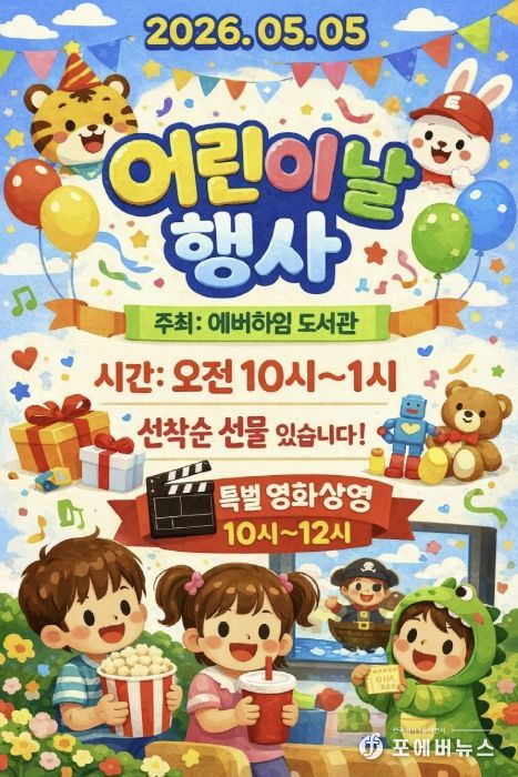 5월 5일 어린이날에는 에버하임 도서관에서 오전 10시부터 오후 1시까지 특별 이벤트를 개최하고, 10시부터 12시까지 영화 상영을 진행한다.