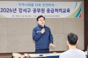 [ 포에버뉴스 김경순 기자 ] 서울 강서구는 26일 오전 10시 강서보건소에서 응급 시 주민의 생명을 구하기 위한 ‘응급처치 실전 교육’을 실시했다. ‘2025년 한국 심폐소생술 가이드라인’에 따르면, 구급대가 이송한 병원 밖 심정지 환자는 2008년 2만 1,905명에서 2024년 3만 3,034명으로 크게 증가했다. 심정지 발생 후 4~5분이 지나면 산소 부족으로 뇌 손상이 시작되기 때문에 구급대 도착 전 목격자의 신속한 대응이 매우 중요하다. 이번 교육은 구청 직원 82명을 대상으로 응급처치의 중요성을 인식하고, 일상생활이나 민원 현장에서 발생할 수 있는 심정지 등 응급상황에 신속하고 정확하게 대응할 수 있는 역량을 강화하기 위해 마련됐다. 특히 최근 발표된 ‘2025년 한국 심폐소생술 가이드라인’의 개정 내용을 반영해 교육의 정확성을 높였다. 최신 지침에 따른 심폐소생술 절차와 자동심장충격기(AED) 사용법 등을 포함해 직원들이 실제 현장에서 당황하지 않고 효과적으로 대처할 수 있도록 구성했다. 교육에는 이대목동병원 이재희 응급의학과 교수를 초빙해 심폐소생술 및 자동심장충격기 사용법 등 주