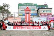 [ 포에버뉴스 김경순 기자 ] 파주시는 지난 10일 금촌역 광장에서 사랑의 온도탑 100도시(℃)를 향한 힘찬 외침과 함께 ‘사랑의 온도탑’제막식을 개최했다고 밝혔다. 이번 행사는 ‘희망2026 나눔캠페인’(2025. 12. 1.~2026. 1. 31.)의 시작을 알리고 시민들의 기부 참여를 독려하기 위해 마련됐다. ‘희망2026 나눔캠페인’은 ‘행복을 더하는 기부, 기부로 바꾸는 파주’라는 표어 아래 이달부터 내년 1월 말까지 62일간 진행된다. 올해 사랑의 온도탑 모금 목표액은 11억 원으로, 모금 목표액의 1%(1,100만 원)가 모금될 때마다 온도탑도 1도시(℃)씩 올라간다. 이날 제막식에서는 ㈜비.엘.아이 서경아 대표의 파주시 ‘제26호 아너소사이어티’가입식도 함께 진행됐다. 또한, 아너소사이어티 회원들과 파주상공회의소, 사회복지기관, 읍면동 지역사회보장협의체 등 여러 단체에서 참여해 나눔 문화 확산에 동참하는 의지를 나타냈다. 김경일 파주시장은 “사랑의 온도탑은 ‘우리 곁에는 언제나 사랑과 나눔을 실천하는 이웃이 있다’라는 내용을 전하는 상징으로, 온도가 올라갈수록 마음의 온기가 느껴지
