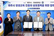[ 포에버뉴스 김경순 기자 ] 파주시는 지난 11일 연세대학교 미래교육원과 ‘일생일대 프로젝트’의 공동 기획·운영을 위한 평생교육 진흥 업무협약(MOU)을 체결하고, 2026년 사업 확대를 위한 협력 체계를 본격 가동했다. 이번 협약은 파주시의 대표적인 대학 연계 평생학습 사업인 ‘일생일대 프로젝트’를 보다 체계적이고 지속 가능하게 추진하기 위한 협력 기반을 마련하기 위한 것으로, 시민 생활권 내에서 명문 대학의 고품격 교육을 누릴 수 있는 학습 환경 조성을 목표로 한다. ‘일생일대 프로젝트’는 하나의 읍면동 평생학습센터와 하나의 대학을 1대 1로 연계해, 시민들에게 생활권 내 학습 기회를 제공하는 경기도 최초의 파주형 평생학습 모델이다. 연세대학교(미래교육원)은 이번 협약을 통해 대학이 보유한 전문성과 교육 자원을 활용해 파주시민을 위한 특화 교육과정을 설계·운영할 예정이다. 이날 협약식에서 오석영 연세대학교 미래교육원장은 “연세대학교 미래교육원은 지역사회와 함께하는 평생교육을 꾸준히 실천해 왔다”라며 “이번 협약을 통해 파주 시민에게 실질적이고 의미 있는 학습 기회를 제공하고, 대학이 가진 지식과 인적 자
