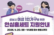 [ 포에버뉴스 김경순 기자 ] 성남시는 여성 1인 가구의 범죄예방과 안전한 주거생활을 위해 ‘안심 홈세트 3종’을 지원한다고 16일 밝혔다. 지원 품목은 스마트 도어벨, 홈캠, 문열림 센서다. 대상은 성남시에 사는 여성 1인 가구 또는 한부모(모자, 부녀)가족이면서 전월세 보증금 3억원 이하의 다가구·다세대 주택 거주자다. 지원 물량은 44가구다. 시는 신청자의 자격요건 확인 뒤 대상 가구에 안심 홈세트를 선착순으로 지원한다. 희망자는 오는 4월 20일부터 성남시 홈페이지(시정소식→새소식) 또는 경기민원24 홈페이지(여성 1인가구 안심패키지 지원사업)를 통해 신청서와 임대차계약서 사본을 첨부해 보내면 된다. 시청 6층 여성가족과를 방문 접수하거나 담당자 이메일로 해당 서류를 보내도 된다. 성남지역 1인 가구 수는 3월 말 기준 전체 41만325가구의 39%인 16만661가구다. 이 중 여성 1인 가구는 48%인 7만7845가구다. 성남시는 2021년도부터 이 사업을 펴 지난해까지 5년간 576가구에 안심 홈세트를 지원했다.