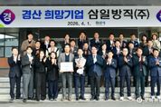 [ 포에버뉴스 사공선 기자 ] 경산시는 2026년 2분기 경산 희망기업으로 삼일방직(주)을 선정하고, 1일 시청 대회의실에서 경산 희망기업 선정식을 가져 트로피와 현판을 수여했다. 진량읍에 위치한 삼일방직(주)(대표 노희찬)은 45년 이상의 업력을 보유한 섬유 제조 강소기업으로 2010년 부설 연구소(PILOT 공장)를 설립하여 신제품개발과 공정개선에 집중하며 2013년 섬유업계 최초로‘월드클래스 300 프로젝트’에 선정되는 쾌거를 이루며 지역기업으로서 탄탄한 기반을 다져왔다. 특히, 2017년에는 미국 애틀란타 소재의 중견 방적 기업인 뷸러 퀄리티얀스(BQY)를 인수하는 전략적 선택과 단계적인 설비 투자로 현지화에 성공하며 미주와 유럽 시장에 진출하는 교두보를 마련했다. 또한, 사원들의 자기 계발 교육비 지원, 학자금 지원 제도, 근로복지 기금을 운영하며 근로자의 삶의 질 향상에도 최선을 다해왔다. 그로 인해 창립 이래 단 한 번의 노사분규도 발생하지 않았으며, 노(勞)와 사(使)가 상생 협력하는 선진적인 노사 문화 정착에 앞장섰다. 노희찬 대표는 “경산 희망기업으로 선정되어 지역기업으로서 책