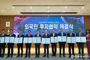 [ 포에버뉴스 사공선 기자 ] 국내외 기업 투자 유치를 최우선 과제로 추진 중인 민선8기 힘쎈충남이 ‘아랍’ 자본을 비롯, 4개국 4개 외국인투자기업으로부터 1억 7100만 달러 규모의 외자유치에 성공했다. 미국 보호무역주의 강화와 선진국 경기 부진, 고금리 기조 등 글로벌 투자 환경이 위축된 가운데 거둔 성과로, 민선8기 외자유치 규모가 40억 달러를 돌파하며 목표(50억 달러) 달성에 파란불을 밝혔다. 김태흠 지사는 10일 도청 대회의실에서 미국 윌리엄 송 한국메티슨특수가스 대표이사, 아랍에미리트(UAE) 레이먼드 셰플러 하이티 최고경영자(CEO), 임성의 유아이헬리콥터 CEO, 최준호 ABB코리아 대표이사, 박영대 동신포리마 대표, 김석필 천안시장 권한대행, 오세현 아산시장, 이용록 홍성군수, 최재구 예산군수와 투자유치협약(MOU)을 체결했다. MOU에 따르면, 한국메티슨특수가스는 아산시 인주면 개별 입지 5만 4574㎡의 부지에 반도체용 특수가스 생산공장(2공장)을 건립한다. 이를 위해 한국메티슨특수가스는 8100만 달러를 투자할 계획이다. 2공장을 건립·가동하면 한국메티슨