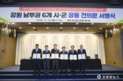 [ 포에버뉴스 사공선 기자 ] 강원 남부권 6개 시군(원주·횡성·영월·평창·정선·태백)은 24일 오전 11시, 호텔인터불고 원주에서 국토교통부의 ‘제7차 공항개발 종합계획’에 ‘원주(횡성)공항의 국제화 사업 반영’을 요청하는 공동 건의문을 채택했다. 이날 서명식에는 원강수 원주시장, 김명기 횡성군수, 이상호 태백시장, 최명서 영월군수, 심재국 평창군수, 최승준 정선군수 등 강원 남부권 6개 시군의 시장·군수가 모두 참석해 원주(횡성)공항 국제화 추진에 뜻을 모았다. 이번 공동 건의문 채택은 원주(횡성)공항 국제화가 침체된 강원 남부권 경제를 되살리고 공동 번영을 이끌 핵심 인프라라는 인식을 공유하고, 이에 대한 정부의 적극적인 지원과 조치를 요청하기 위해 마련됐다. 건의문의 주요 내용은 ①강원 남부권의 절실한 지역 현안과 새로운 돌파구 필요성 ②원주(횡성)공항의 경제적 파급 효과 ③국토교통부의 선제적 결단 촉구 등이며, 강원특별자치도를 통해 국토교통부에 전달될 예정이다. 원주(횡성)공항의 시설 개선으로 국제선 유치 여건이 갖춰지면, 강원 남부권 지역 경제 활성화는 물론, 수도권과 비수도권 간