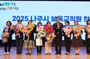 [ 포에버뉴스 오명숙 기자 ] 전라남도 나주시는 지난 7일 나주문화예술회관에서 나주시 어린이집 보육 교직원 550여 명이 참석한 가운데 ‘어린이집 보육 교직원 한마음대회’를 개최했다. 나주시어린이집연합회 주관으로 열린 이번 행사는 보육 교직원 윤리 강령 선서, 보육 교직원 유공 표창장 시상, 재즈 색소폰 및 댄스 크루 공연 등으로 구성되어 보육 교직원들의 사기를 높이는 의미 있는 행사로 꾸며졌다. 나주시어린이집연합회 김귀순 회장은 “오늘 한마음대회가 보육 교직원들의 화합과 단결을 도모하는 계기가 되었으면 한다”며 “앞으로도 이런 행사를 통해 직무스트레스를 완화하고 더욱 발전해 나가는 나주시어린이집연합회가 되기 위하여 노력하겠다”고 말했다 윤병태 나주시장은 “나주시 아이들을 위해 보육 현장에서 묵묵히 근무하시는 모든 보육 교직원분의 노고를 격려하는 자리에 함께해서 기쁘다”며 “항상 우리 아이들이 건강하고 행복하게 자랄 수 있도록 힘써주시는 보육 교직원분들께 감사드린다”고 밝혔다.