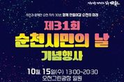 [ 포에버뉴스 오명숙 기자 ] ‘더 큰 미래를 위한 삶의 쉼터, 치유도시 순천!’ 그 새로운 도약을 위한 순천시(시장 노관규)가 오는 15일 오천그린광장 일원에서 24개 읍면동 화합행사와 함께 ‘제31회 순천시민의 날’기념식을 개최한다. 이번 행사는 오후 1시부터 밤 8시 30분까지 28만 순천시민이 하나되어 글로벌 문화산업, 삶이 머무는 치유도시 메카로 발돋움한 일류 순천의 자부심을 높이는 장으로 어울한마당 큰 잔치가 성대하게 펼쳐진다. 이날 펼쳐지는 제31회 순천시민의 날 행사는 지역사회의 화합과 단결을 다짐하고, 순천의 발전을 기념하는 의미있는 시간으로 1부 행사와 2부 행사로 나눠 진행된다. 1부 행사는 오천그린광장 주차장 일원에서 오후 1시부터 오후 5시까지 ▲24개 읍면동 화합을 위한 장기자랑 ▲어린이 한마당 잔치 ▲버블매직쇼 ▲울려라! 도전 순천역사골든벨 ▲읍면동 먹거리부스 ▲순천하세요!(김수련, 양서영, 하숙자 가수의 공연) ▲체험부스 ▲푸짐한 경품 등이 마련돼 가족 단위 방문객에게 인기가 높을 것으로 기대된다. 특히 시민들이 함께 즐길 수 있는 ‘먹거리 부스’에서는 24개 읍면동이
