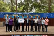 [ 포에버뉴스 이승훈 기자 ] (사)나누는 사람들가 지역사회 독거노인 지원을 위한 나눔 프로젝트인 ‘전주함께미(米)소(笑)’에 동참했다. (사)나누는 사람들은 19일 건지산 오송제 일대에서 9개 산하기관 임직원 100여 명이 참여한 가운데 ‘직원 건강 걷기대회’ 행사를 개최했다. 이번 건강걷기대회는 (사)나누는 사람들이 몸과 마음이 건강한 법인으로 나아가기 위해 마련된 행사로, 참석한 임직원들은 걷기운동과 건지산 진입로 줍깅, 환경보호활동, 미니올림픽 등을 진행했다. 특히 참여한 임직원들은 전주 하계올림픽 유치를 기원하는 퍼포먼스를 펼치기도 했다. 이와 함께 (사)나누는 사람들은 우범기 전주시장, 이순태 나누는 사람들 대표이사, 최재훈 전주시노인복지관연합회장 등이 참석한 가운데 전주지역 독거노인 지원을 위한 나눔 프로젝트인 ‘전주함께미(米)소(笑)’ 기부금 전달식을 가졌다. 이 자리에서 (사)나누는 사람들 임직원들은 나눔 문화 확산을 위한 프로젝트에 적극 동참하겠다는 의지를 담아 모은 현금 300만 원을 전주시에 전달했다. 전달된 기부금은 전주지역 7개 노인복지관에서 모금