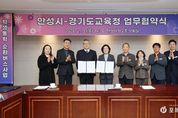 [ 포에버뉴스 김경순 기자 ] 경기도교육청과 안성시는 2월 19일 안성시청에서 '안성미래교육협력지구와 경기공유학교 운영을 위한 업무 협약'을 체결했다. 협약 내용은 ▲지역 특색을 반영한 학교맞춤형 교육지원사업 협력 운영 ▲경기공유학교 운영 및 지역교육협력 네트워크 파트너십 구축 협조 ▲지역교육자원 발굴 및 교육공동체 역량 강화 ▲ 기타 양 기관이 합의하는 교육협력 사업이다. 협약과 더불어 경기도안성교육지원청(교육장 이정우)과 안성시(시장 김보라)는 '2026 안성미래교육협력지구(경기공유학교 학교맞춤형) 부속합의'를 체결하여 지역 특색을 살린 미래 교육 활성화 방안을 구체화했다. 이정우 교육장(경기도안성교육지원청)은 “이번 협약과 부속합의를 통해 교육(지원)청과 지자체 간 협력체계를 강화하여 지역 연계 교육을 활성화할 수 있는 토대를 마련했다.”라며 “지역교육자원을 활용한 학생 맞춤형 미래 교육을 실현하기 위해 더욱 노력하겠다.”라고 밝혔다. 한편 경기도교육청과 기초지자체가 협력해 추진해 온 '미래교육협력지구'는 2026년부터 '경기공유학교 학교맞춤형'으로 정책명이 변경되어 지역교육자원을 활용한 학