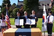 [ 포에버뉴스 김경순 기자 ] 평택시의회는 22일, 미국 애니 라이트 스쿨에서 열린 협약식에 참석해 양해각서(MOU)를 체결하며, 평택국제학교 설립을 공식화했다. 이날 협약식에는 강정구 평택시의회 의장, 정장선 평택시장, 애니 라이트 스쿨 데이비드 오버튼 이사장, 제이크 과드놀라 교장을 비롯한 학교 관계자, 학부모, 학생, 지역 인사들이 함께했다. 협약식에 이어 열린 리셉션에는 메를린 스트릭랜드 연방 하원의원, 데니 헥 워싱턴주 부주지사, 라이언 멜로 피어스 카운티 행정수반 등 지역 주요 인사들이 참석해 지역 협력을 논의했다. 강정구 의장은 “오늘 양해각서(MOU) 체결을 계기로 평택국제학교 설립에 필요한 실무적 협의를 완료하고 교육환경 선진사례를 직접 확인함으로써 평택시의 글로벌 교육환경이 조속히 조성되기를 바란다”라고 하며 “시민들에게 실질적인 혜택이 돌아가도록 꼼꼼히 점검하고 정책에 반영하겠다”고 밝혔다.