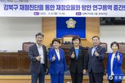 [ 포에버뉴스 김경순 기자 ] 강북구의회 의원연구단체인 ‘강북구 재정혁신 연구회’ (대표의원 최미경)는 지난 9월 8일(월) 의회 3층 의원회의실에서 중간보고회 및 세미나를 가졌다. ‘강북구 재정혁신 연구회’는 최미경 대표의원과 김명희 의장, 이상수 의원, 박철우 의원 등 4명으로 구성돼 있으며, 강북구의 재정 현황을 종합적으로 진단·분석하고 재정 운영의 개선 방안을 모색하기 위해 연구 활동을 이어가고 있다. 이번 중간보고회에서는 지난 7월 착수보고회에 이어 연구용역 수행기관인 지방자치발전소 책임연구원이 연구 중간 결과를 발표하며 강북구 재정의 현황과 개선 필요성을 설명했다. 이어 ‘결산 심사 실전 방안’을 주제로 한 세미나가 열려 실제 의정활동에 접목할 수 있는 다양한 사례와 방법이 공유됐다. 참석한 의원들은 각자의 경험을 바탕으로 의견을 교환하며, 재정 운영의 합리화와 효율성 제고를 위한 활발한 토론을 이어갔다. 최미경 대표의원은 “이번 연구가 단순한 분석에 그치지 않고 강북구 재정 운영의 실질적인 개선으로 이어질 수 있도록 최선을 다하겠다”며 “구민의 삶의 질 향상으로 이어질 수 있는 합리적인 재정 혁신