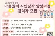 [ 포에버뉴스 김경순 기자 ] 안성시는 아동친화도시로서 아동권리 인식 확산과 시민강사 양성을 위해 '아동권리 시민강사 양성과정' 참여자를 모집한다. 이번 과정은 아동권리에 대한 지역사회 인식을 확산하고, 관련 교육을 수행할 시민강사를 양성함과 동시에 중장년층의 사회참여 기회를 확대하기 위해 마련됐다. 교육은 2026년 4월 15일부터 6월 25일까지 운영되며, 총 11회차에 걸쳐 집합교육과 자율학습을 병행하여 진행된다. 모집 대상은 안성시에 거주하는 40세부터 64세까지의 중장년 시민 20명이다. 교육신청은 4월 6일부터 10일까지 안성시평생교육통합플랫폼(안성배움e)를 통해 접수한 후, 별도의 신청서를 이메일로 제출하면 된다. 교육대상자는 신청서를 바탕으로 참여 의지와 지원동기 등을 종합적으로 평가해 선발할 예정이다. 교육과정은 ▲아동권리 및 인권 기초 이해 ▲유엔아동권리협약의 이해 ▲긍정적 훈육 ▲아동인권 교육 프로그램 설계 등 이론과 실습을 병행하는 체계적인 내용으로 구성된다. 수료자는 민간자격인 ‘아동인권옹호전문가 2급’ 자격시험에 응시할 수 있으며, 향후 관내 초·