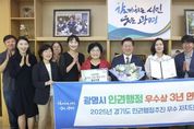 [ 포에버뉴스 김경순 기자 ] 광명시가 경기도가 선정하는 인권 행정추진 우수 기관으로 3년 연속 선정되며 인권 선도 도시로 확고히 자리매김했다. 시는 지난 9월 30일 경기도청 다산홀에서 열린 ‘2025년 경기인권포럼’에서 경기도 인권 행정추진 우수 자치단체 경기도지사 표창을 받았다. 경기도는 31개 시군을 대상으로 인권행정 제도와 정책 추진 성과를 종합 평가해 5개 우수 자치단체를 선정했으며, 광명시는 평가 제도가 도입된 2023년부터 올해까지 매년 수상하는 성과를 거뒀다. 이번 수상은 ▲인권행정 제도 구축(인권조례제정, 인권위원회 구성 및 운영, 인권교육 실시 등), ▲인권정책 수립(인권기본계획 수립 및 연도별 시행계획 수립, 인권실태조사 및 인권영향평가, 인권문화행사 등) ▲지역사회 인권증진 활동 ▲시민 인권 보장과 존중 문화 확산 등 전반적 성과를 전문가들로부터 인정받은 결과다. 광명시는 2012년 지방자치단체 최초로 ‘광명시민인권센터’를 개소하고, ‘인권보장 및 증진 5개년 기본계획’ 수립하는 등 인권 친화적 행정의 기틀을 마련해 왔다. 특히 인권기본계획에 재개발·재건축이 많