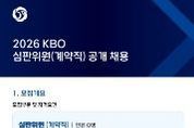 [ 포에버뉴스 사공선 기자 ] KBO는 퓨처스리그에서 활동할 KBO 심판위원을 공개 채용한다. 이번 채용은 KBO 야구심판 양성과정 수료자(2026년 야구심판 양성과정 수료 예정자 포함) 또는 대한야구소프트볼협회(KBSA) 및 산하단체, 독립리그 소속 심판으로 1년 이상의 심판 활동 경력(단체장 직인 필수) 보유자에 한해서 지원이 가능하다. 최종 합격자는 2026 KBO 공식 심판위원으로 활동하게 되며, 근무 종료 후 평가 결과에 따라 정규직 전환이 검토된다. 채용과 관련된 세부 정보 및 우대 사항은 채용 공고문을 통해 확인 가능하다. 접수 기간은 오늘(2일)부터 23일(월)까지며, KBO 채용 홈페이지(kbo.saramin.co.kr)에서 지원 가능하다.