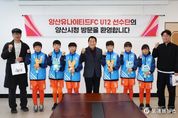 [ 포에버뉴스 사공선 기자 ] 양산시는 지난 3일 시청 3층 상황실에서 제55회 전국소년체육대회 경상남도 대표 선발전을 앞두고 훈련에 매진 중인 ‘양산유나이티드FC U12’ 선수단을 초청해 격려 간담회를 가졌다. 이날 간담회에는 양산유나이티드FC 배익두 대표이사와 조용기 감독을 비롯해 오지훈(부산 좌산초), 박라현(가촌초), 박승우(금송초), 강준서(동산초), 유현우(황산초), 김가인(금오초) 등 팀을 대표하는 12세 이하 유망주 선수 6명이 참석했다. 이번 간담회는 지역을 대표해 구슬땀을 흘리고 있는 어린 선수들의 사기를 북돋우고, 현장의 목소리를 청취하기 위해 마련됐다. 양산유나이티드FC U12팀은 현재 다가오는 전국소년체전 경남 대표 선발전을 대비해 강도 높은 훈련을 이어가고 있다. 지난 2021년 법인화와 함께 공공스포츠클럽으로 출범한 양산유나이티드FC는 짧은 역사에도 불구하고 괄목할 만한 성과를 거두며 영남권 최고의 유소년 축구 명문으로 자리 잡았다. 주요 성과로는 ▲경남 초·중 종합체육대회 6회 연속(2020~2025) 우승 ▲2년 연속(2023~2024) 전국소년체육대회