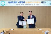 [ 포에버뉴스 사공선 기자 ] 통영시는 경상국립대학교(총장 권진회)와 함께 지역 유일의 대학인 해양과학대학의 교육·연구 기반 강화와 운영 활성화를 위해 경상국립대학교 가좌캠퍼스 중앙도서관 6층 회의실에서 ‘통영시·경상국립대학교 상생발전을 위한 업무협약’을 25일 체결했다. 이날 협약식은 천영기 통영시장, 권진회 경상국립대총장, 문성주 해양과학대학장을 비롯해 통영시와 경상국립대학교의 주요 간부급 인사들이 대거 참석한 가운데, ▲식전 차담 ▲홍보영상 상영 ▲기관장 인사 말씀 ▲업무협약 서명 ▲기념촬영 순으로 진행됐다. 이번 협약은 해양과학대학의 교육·연구 기능 등을 강화해 지역사회를 활성화하고, 대학 인근 상권 침체 등 지역의 위기를 선제적으로 극복하기 위해 마련됐다. 주요 내용으로는 ▲해양과학대학 주변 정주환경 개선을 위한 ‘협력 플랫폼’ 구축·운영 ▲대학 시설물을 활용한 체류형 교육과정 개설 및 지역 연계 비교과 프로그램 공동 운영 ▲교육특구사업과 연계한 해양레저 교육 인프라 구축 및 교육프로그램 공동 추진 ▲통영지역 중점산업과 연계한 외국인 유학생·연수생 및 각종 행사 유치를 통한 대학 경쟁력 강화와 지역