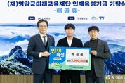 [ 포에버뉴스 오명숙 기자 ] 배공휴 대양축산 대표가 6일 영암군청을 찾아 영암군미래교육재단에 지역 인재 육성 장학금 500만원을 기부했다. 2017년부터 해마다 장학금 전달을 이어온 배 대표는, 이날 기부에 아들 경준 씨와 함께해 눈길을 끌었다. 경준 씨는 아버지의 나눔을 이어 장학금 기부를 지속해 나가겠다는 뜻을 밝히며 세대를 잇는 나눔의 모범을 보였다. 배 대표는 “대양축산은 지역사회와 함께 성장해 왔고, 지역민에게 받은 신뢰에 보답하는 지역사회 환원은 당연한 일이다”고 말했다.