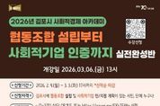 [ 포에버뉴스 김경순 기자 ] 김포시가 사회문제 해결을 위한 참신한 아이디어와 실행력을 갖춘 사회적경제기업 육성을 위해 ‘2026년 김포시 사회적경제 아카데미’를 개설하고, 오는 3월 3일까지 수강생을 모집한다. 이번 아카데미는 평소 사회적경제에 관심 있는 김포시민은 물론, 연내 협동조합 설립과 사회적기업 인증을 준비 중인 관내 기업, 단체라면 누구나 신청할 수 있다. 교육 과정은 ▲사회적기업 개념 및 인·지정 요건 ▲협동조합 개념, 설립 절차 및 인가 요건 ▲2026년 지원제도 등 사회적경제에 대한 기본 개념을 습득하고, 연내 진입을 위한 사전 준비가 가능하도록 실전형으로 구성했다. 특히 전문가 1:1 멘토링을 통해 ▲사업 아이템의 경쟁력 및 지속가능성 진단 ▲정관, 사업계획서 등 필수서류 작성 ▲심사 및 현장실사 대비 전략 등 기업 맞춤형 컨설팅이 후속으로 지원될 예정이다. 수강신청은 3월 3일까지 온라인으로 가능하며, 자세한 사항은 김포시청 홈페이지를 참조하거나 김포시청 지역경제과로 문의하면 된다. 김포시는 ‘일자리창출을 위한 재정지원’을 비롯해 ‘전략모델 개발비’, ‘교육·컨설