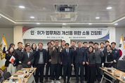 [ 포에버뉴스 김경순 기자 ] 김포시는 지난 3월 19일 김포시청 영상회의실에서 ‘인허가 업무처리 개선을 위한 소통 간담회’를 개최해 인허가 절차 간소화 및 처리기간 단축 등 방안을 논의하는 시간을 가졌다. 이번 간담회는 김포시 관계 공무원과 지역 건축사 및 토목설계사무소가 참석한 가운데 인허가 업무처리 개선을 위한 협조사항을 전달하고, 지역 건축사와 토목설계사무소의 애로사항 및 건의사항을 청취하는 순서로 진행됐다. 아울러, 효율적이고 빠른 인허가 처리를 위해 자주 반복되는 보완 사항과 주요 지침 및 준수사항을 공유했다. 또한 행정 전반에 걸친 소통과 논의를 하고, 수용 및 개선 가능한 사항에 대해서는 신속히 반영할 계획임을 밝혔다. 간담회에 참석한 이석범 부시장은 “현장 건축사 및 토목설계사무소 소장들의 의견은 현행 인허가 시스템 점검과 개선 대책 마련에 중요한 자료다”며 “앞으로도 정기적인 간담회 등을 통해 효율적이고 신속한 인허가 처리로 지역 주민들이 만족할 수 있는 행정이 되도록 노력하겠다”고 밝혔다.