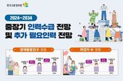 [ 포에버뉴스 사공선 기자 ] 한국고용정보원(원장 이창수)은 '중장기 인력수급 전망'을 통해 향후 10년간 우리나라 노동시장의 인력공급(경제활동인구)과 인력수요(취업자)가 구조적으로 전환되는 양상을 전망하고, 향후 지속적인 성장을 위해 추가로 필요한 인력을 추계했다. 1.중장기 인력수급 전망(2024~2034) 주요 전망 결과를 보면, 15세 이상 인구 증가 폭은 과거에 비해 크게 둔화되고, 경제활동인구는 2030년부터는 본격적인 감소세로 전환될 것으로 나타났다. 저출생·고령화의 영향으로 생산가능인구(15~64세)는 지속적으로 감소하는 반면, 65세 이상 고령층 비중은 2034년 31.7%까지 확대되면서 노동 공급의 구조적 제약이 본격화될 전망이다. 이로 인해 15세 이상 전체 경제활동참가율은 전망 전기(‘24~’29년)에 감소 전환하는 반면, 고령층과 여성의 경제활동참가율은 점진적으로 상승할 것으로 예상되어, 노동시장 내 고령화 심화와 인력 구성의 질적 변화가 동시에 진행될 것으로 보인다. 2024년~2034년까지 취업자 수는 6.4만 명 증가하겠으며, 노동공급 제약의 영향으로 2