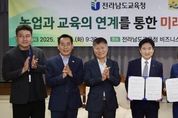 [ 포에버뉴스 오명숙 기자 ] 전라남도교육청은 10월 14일 청사 5층 비지니스실에서 전라남도 농업기술원(원장 김행란)과 ‘농업과 교육의 연계를 통한 미래인재 육성 업무협약’을 체결했다. 이번 협약은 농업·농촌의 다양한 자원을 교육과 연계해 학생들이 체험 중심으로 배우고, 생태 감수성과 창의 역량을 키울 수 있도록 지원하기 위해 마련됐다. 이번 협약에 따라 양 기관은 ▲ 농촌교육농장과 치유 농장을 활용한 체험교육 확대 ▲ 늘봄학교 운영과 연계 가능한 프로그램 제공 ▲ 생태 기반 창의 교육, 진로, 창업 체험처 발굴 및 정보 제공 ▲ 지속가능한 농촌교육 모델 구축 등에 힘을 모으기로 했다. 양 기관은 협약 내용을 바탕으로, 각급 학교와 교육지원청이 쉽게 활용할 수 있는 프로그램을 발굴하고 현장 체험 중심 교육 자료를 개발할 예정이다. 또한 교원 연수와 교육공동체 협력 네트워크를 운영해 농업·농촌 자원을 효과적으로 교육 현장에 적용할 수 있도록 지원할 방침이다. 아울러, 농촌교육농장의 교육적 활용도를 높이고, 지역 농업과 연계한 미래형 교육 모델을 확산할 계획이다. 학생들은