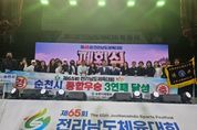 [ 포에버뉴스 사공선 기자 ] 순천시는 지난 10일부터 13일까지 4일간 구례군 일원에서 열린 제65회 전라남도체육대회에서 종합우승을 차지하며 3년 연속 종합우승의 쾌거를 달성했다. 전남 22개 시군 7,000여 명의 선수단이 참가한 이번 대회에 순천시는 23개 전 종목, 402명의 선수단이 참가해 그동안 갈고닦은 실력과 기량을 유감없이 발휘하며 종합 1위의 영예를 안았다. 종목별로는 배구, 소프트테니스, 족구, 바둑에서 1위를 축구, 복싱에서 2위를 골프, 농구, 검도, 씨름, 유도, 볼링에서 3위를 거두는 등 전 종목에서 고른 활약을 선보였다. 한편 대회 기간 중 8개 시·군 선수 및 관계자 3,000명 이상의 방문객이 지역 내에서 숙박과 식사, 주요 관광지를 방문하는 등 소비 활동을 한 것으로 분석된다. 이는 순천이 교통·숙박·먹거리 등 생활인프라가 잘 갖춰진 도시로, 경기 참가자뿐만 아니라 인근 지역 선수단의 추가 체류를 유도하며 소비 확대에 기여한 것으로 평가된다. 이에 따라 숙박·외식업 중심 직접 소비 및 연관 산업에 미치는 효과까지 총 경제유발효과는 약 23억 원 이상에