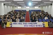 [ 포에버뉴스 박정배 기자 ] 전진선 양평군수는 지난 19일 용문고등학교 소강당에서 3학년 학생 140여 명을 대상으로 ‘큰 꿈을 향한 준비가 미래를 여는 힘’을 주제로 명사 특강을 진행했다. 이번 특강은 대학수학능력시험을 마치고 졸업을 앞둔 학생들에게 진로 탐색의 방향을 제시하고, 사회로 나아가는 데 필요한 용기와 동기를 부여하고자 마련됐다. 특강에서 전 군수는 자신의 삶과 공직 경험을 토대로 목표를 향해 꾸준히 나아가는 자세의 중요성을 강조하며, 더 큰 꿈을 품고 이를 실천할 수 있는 힘을 길러야 한다고 조언했다. 또한 양평의 미래 발전 방향을 소개하며, 앞으로 학생들이 다양한 분야에서 주도적인 역할을 할 수 있도록 군이 든든한 지원군이 되겠다는 뜻을 전했다. 또한 사회 초년생이 겪을 수 있는 전세사기와 보이스피싱 피해를 예방하기 위한 실생활 안전 정보를 쉽고 명확하게 전달해 학생들의 큰 호응을 얻었다. 전진선 양평군수는 “고3이라는 치열한 시간을 지나 새로운 출발선에 선 여러분이 각자의 자리에서 밝고 힘차게 성장하길 진심으로 응원한다”고 격려의 메시지를 전했다.