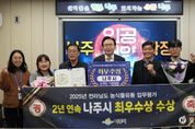 [ 포에버뉴스 오명숙 기자 ] 전라남도 나주시가 농특산물 유통 활성화와 농식품 산업 경쟁력 강화 성과를 인정받아 전라남도 주관 농식품유통 업무평가에서 전남을 대표하는 농식품 유통 선도 도시로서의 위상을 다시 한번 확인했다. 나주시는 전라남도가 주관한 ‘2025년 전라남도 농식품유통 업무평가’에서 2년 연속 최우수상을 받았다고 26일 밝혔다. 이번 평가는 도내 21개 시군을 대상으로 농특산물 유통 활성화, 농식품 산업 육성, 쌀 판매 실적 및 고품질 브랜드쌀 육성, 농산물 안전성 강화 등 4개 분야 14개 세부 항목과 함께 전국 단위 시상 실적, 공모사업 선정 성과 등을 종합적으로 반영해 이뤄졌다. 나주시는 농식품부 주관 ‘2025 지역먹거리 지수 평가’에서 대상(S) 등급을 3년 연속 달성한 데 이어 농식품 유통 체계 개선과 지역 농산물 경쟁력 제고를 위한 다양한 정책을 추진해 온 점에서 높은 평가를 받았다. 특히 농특산물 판로 확대를 위해 전라남도 온라인 쇼핑몰 ‘남도장터’에 관내 177개 농가와 업체가 입점하도록 지원하며 온오프라인 유통 기반을 강화하고 소비자 접근성을 크게 높였다.