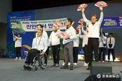 [ 포에버뉴스 사공선 기자 ] 전북 고창군이 26일 오후 고창군립체육관에서 ‘제19회 전북특별자치도장애인체육대회’ 개회식을 성대하게 개최하고 본격적인 대회의 시작을 알렸다. 이번 장애인체전은 ‘행복도시 고창에서 감동가득 희망체전’이라는 슬로건 아래 28일까지 고창군 일원에서 열린다. 전북 14개 시군에서 선발된 약 2000명의 선수단과 임원이 참가해 게이트볼, 태권도, 보치아, 탁구, 론볼 등 15개 종목에서 갈고닦은 기량을 겨루며 열정과 도전의 스포츠 정신을 펼칠 예정이다. 개회식은 고창군을 대표하는 장애인 문화예술단체 디새온의 가야금과 하모니카 연주로 화려하게 막을 올렸으며, 14개 시군 선수단의 입장식이 힘차게 진행됐다. 이어 고창군장애인체육회 정종만 부회장의 개회선언과 심덕섭 고창군수의 환영사, 주요내빈의 축사가 이어지며 대회의 열기와 감동을 더했다. 대회기 게양, 선수·심판 대표 선서 등 공식행사도 차례로 진행됐으며 인기가수 윤수현과 최재명의 축하무대도 관람객의 큰 호응을 이끌어내며 개회식 분위기를 한층 고조시켰다. 심덕섭 고창군수는 “이번 대회는 장애인 체육 발전은 물론,