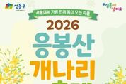[ 포에버뉴스 김경순 기자 ] 서울 성동구는 오는 3월 27일부터 28일까지 이틀간 봄의 기운을 가득 품은 응봉산에서 ‘2026년 응봉산 개나리 축제’를 개최한다. 응봉산은 한강과 서울숲을 비롯한 서울 동부권을 한눈에 내려다볼 수 있는 도심 속 대표 일출 명소이자 조망명소로 손꼽힌다. 매년 봄이면 산 전체가 개나리꽃으로 가득 차 서울에서 가장 먼저 봄소식을 전하는 곳이다. 이에 구는 개나리 개화 시기에 맞춰 매년 주민 모두가 함께 즐기는 ‘응봉산 개나리 축제’를 개최하고 있다. 올해 축제에서는 ▲ 문화 공연 ▲ 가족 백일장 및 그림그리기 대회 ▲ 체험 프로그램 및 개나리 포토존 등 다채로운 행사들이 펼쳐진다. 첫날인 27일에는 금관악기로 구성된 브라스밴드의 신나는 공연을 시작으로 개막식이 열리며, 인생네컷, 페이스페인팅 등 체험프로그램과 다양한 포토존, 개나리 아치 등 조형물이 설치된다. 이어 둘째 날인 28일에는 소년소녀합창단의 멋진 합창 공연에 이어 300여 명의 어린이와 가족들이 참여하는 ‘백일장 및 그림그리기 대회’가 열린다. 구는 3월 25일까지 구청 누리집(홈페이지)을 통해