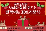 [ 포에버뉴스 김경순 기자 ] 김포시 풍무도서관에서 초등학생을 대상으로 ‘사서와 함께 만드는 반짝이는 3D트리장식’을 오는 12월 10일 오후 4시부터 6시까지 운영한다. 이번 프로그램은 수강생의 학년에 따라 제작 도구의 난이도와 창작물이 구분되며, 참여 학생의 수준에 맞춘 맞춤형 체험활동으로 운영된다. 3D펜을 활용한 제작 경험을 통해 공간·입체 감각을 향상시키는 동시에 연말 크리스마스 시즌의 특색있는 분위기를 느낄 수 있다. 특히 풍무도서관 특화담당 사서가 직접 프로그램을 진행함으로써 안전하고 체계적인 지도가 이뤄질 것이다. 참여 신청은 11월 25일 오전 10시부터 풍무도서관 홈페이지에서 가능하며, 초등학생(1~6학년) 총 12명을 선착순 모집한다.