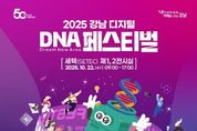 [ 포에버뉴스 김경순 기자 ] 꿈이 모이는 도시, 미래를 그리는 강남구가 오는 10월 22일 오전 9시부터 오후 5시까지 세텍(SETEC) 제1‧2전시실에서 ‘2025 강남 디지털 DNA(Dream New Area) 페스티벌’을 개최한다. 구는 2023년부터 ‘학교로 찾아가는 디지털 미래인재’ 교육 과정을 개발해 운영해 오고 있으며, 여기에 특수학교를 포함한 관내 61개 초·중학교가 참여하고 있다. 올해 상반기에는 42개교 학생 7,300여 명이 이 교육을 이수했다. 이번 페스티벌은 이러한 교육 성과를 공유하고, 학생들이 익힌 기술을 선보이며 미래 기술에 대한 관심을 확장할 기회로 기획됐다. 특히 올해는 개청 50주년을 기념해 프로그램 규모를 대폭 확대해 초·중학생 약 3,500명이 참여할 예정이다. 페스티벌은 크게 ▲AI 경진대회 ▲50주년 기념 AI 체험·전시존 ▲진로직업·미래기술‧평생학습 체험부스 ▲특별강연으로 구성됐다. AI 경진대회는 ‘상상과 기술이 만나는 곳, 2025 강남 디지털 미래인재 챌린지’라는 이름으로 개최되며, 초등학생을 대상으로 한 AI 자율주행차·드론대회와 중학생 대상의 AI 헤리티지