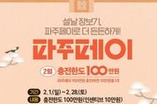 [ 포에버뉴스 김경순 기자 ] 파주시는 다가오는 설 명절을 맞아 추가 충전금 혜택을 받을 수 있는 충전 한도를 기존 70만 원에서 100만 원으로 상향한다. 2월 한 달간 100만 원을 충전할 경우, 연중 상시 지급되는 10% 인센티브가 적용돼 추가 충전금 10만 원이 더해진 총 110만 원을 사용할 수 있다. 이를 통해 명절을 앞두고 소비 지출이 늘어나는 시민의 경제적 부담을 덜고, 지속적인 경기 침체로 어려움을 겪고 있는 관내 소상공인의 매출이 증대될 것으로 기대된다. 파주시 관계자는 “이번 파주페이 확대 발행이 설 명절 장바구니 물가 부담을 완화하고, 지역 골목상권에 활력을 불어넣는 마중물이 되길 바란다”라며, “시민 여러분의 많은 관심과 이용을 부탁드린다”라고 전했다. 한편, 파주페이는 ‘경기지역화폐’앱 및 관내 농협을 통해 충전이 가능하며, 현재 음식점, 학원, 전통시장 등 1만 6천여 개의 가맹점에서 사용할 수 있다. 파주시는 시민 편의 증진과 지역경제 활성화를 위해 지난해 가맹점 연매출 제한 기준을 12억 원에서 30억 원으로 대폭 완화해 사용처를 확대한 바 있으며, 어려운 재정 여건 속에서도 상