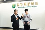 [ 포에버뉴스 김경순 기자 ] 김동연 경기도지사가 16일 동두천중학교를 찾아 노점 할머니께 비상금을 건넨 선행으로 화제가 된 옥현일 군에게 표창을 수여했다. 김 지사는 학교 현관에서 학생회와 함께 ‘함께라서 더 빛나는 우리’ 생명존중 캠페인에 동참하고, 이어 1층 로비에서 옥현일 군에게 표창장을 전달했다. 옥현일 군은 지난 7월 폭염 속에서 노점상 할머니에게 비상금 3만 원을 건네고 콩 한 봉지를 받은 사연이 알려지며 주목받았다. SNS에 게시된 영상은 인근 공방 운영자가 촬영한 것으로, 현일 군이 남모르게 베푼 선행이 담겨 3일 만에 206만 조회수, ‘좋아요’ 약 7만, 댓글 2,500개 이상을 기록했다. 당시 현일 군은 “더운 날씨에 할머니가 물건을 빨리 팔고 쉬셨으면 좋겠다는 마음이었다”고 말해 많은 시민에게 감동을 줬다. 김동연 지사는 이날 인사말을 통해 “옥현일 군이 도운 할머니가 우리의 어머니, 할머니”라며 “수많은 옥현일 군이 동두천중에 있다고 본다. 그것이 사람 사는 세상”이라고 말했다. 이어 “여러분이 그런 따뜻한 마음을 갖길 바란다. 당장은 남을 위한 배려 같지만