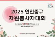 [ 포에버뉴스 김경순 기자 ] 인천중구자원봉사센터는 오는 10일 오후 2시 인천중구문화회관 공연장에서 ‘2025 인천중구자원봉사자 대회’를 개최한다고 밝혔다. 이번 행사는 한 해 동안 지역 곳곳에서 나눔과 봉사를 실천한 자원봉사자들을 격려하고, 자원봉사 활동의 가치 확산과 참여 분위기 조성을 위해 마련됐다. 행사에는 중구청장, 중구의회 의장을 비롯한 지역 내 주요 기관·단체장, 자원봉사자 등 500여 명이 참석할 예정이다. 이번 대회는 1985년 UN이 지정한 ‘세계자원봉사자의 날(12월 5일)’을 기념해 개최되는 것이다. 올해로 23회를 맞는 중구 자원봉사자 대회는 식전 공연을 시작으로 자원봉사활동 영상 상영, 내빈 소개, 우수 자원봉사자 시상, 인증패·인증서 수여, 축사, 경품추첨 등의 순서로 진행된다. 식전 공연은 ‘블리스치어리더팀’이 맡아 화려한 안무와 완성도 높은 퍼포먼스, 탄탄한 팀워크로 활기찬 무대를 선보이며 대회의 분위기를 한층 고조시킬 예정이다. 또한 본 행사는 대한민국 유일의 올라운드 스포츠 MC로 알려진 허지욱 전문 MC가 진행을 맡아, 더 역동적이고