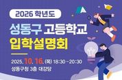 [ 포에버뉴스 김경순 기자 ] 서울 성동구는 오는 10월 16일 오후 6시 30분부터 성동구청 3층 대강당에서 고등학교 진학을 앞둔 학생과 학부모를 대상으로 ‘2026학년도 고등학교 입학설명회’를 개최한다고 밝혔다. 이번 입학설명회는 예비 고등학생과 학부모를 대상으로 고교학점제에 대한 이해를 높이고, 지역 내 일반계 고등학교별 입학 정보를 제공하기 위해 성동구와 성동광진교육지원청(교육장 이긍연)이 공동으로 마련한 자리이다. 설명회는 ▲ 1부 고교 진학 대비 특강(강사: 성북강북교육지원청 송치경 장학사) ▲ 2부 성동구 학교별 입학설명회 및 1:1 상담(경일고, 금호고, 도선고, 무학여고, 성수고, 한대부고)으로 진행된다. 1부 특강은 송치경 장학사가 ‘고교 학점제와 대학 입시의 이해·전략’이라는 주제로 강연을, 2부 학교별 설명회는 각 학교의 입학 담당교사가 학교별 특성, 교육 운영 과정, 진로 진학 전략 등을 안내할 예정이다. 특히 학교별 1:1 상담은 설명회 당일 오후 6시부터 참석자 대상 선착순 현장 접수하며, 학교별 입학 담당교사가 맞춤형 개별 상담으로 진행할 예정이다. 설명회는 9월 26