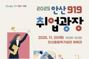 [ 포에버뉴스 김경순 기자 ] 안산시는 오는 20일 ‘2025년 11월 안산 919취업광장’을 안산올림픽기념관 체육관에서 개최한다고 5일 밝혔다. 이번 ‘안산 919취업광장’은 안산시일자리센터와 지역 일자리 유관기관이 협업해 진행하는 올해의 마지막 채용행사다. 시는 인력난을 겪고 있는 기업체에 우수 인력을 지원하고 취업을 희망하는 구직자에게는 일자리 기회를 제공하는 등 미스매칭 해소를 통한 만남의 장을 마련한다. 이날은 우수기업체 30여 개 사가 참여할 예정이다. 한편, 안산시는 지난 9월 경기도와 공동으로 ‘안산시 스마트허브 2040·경기도 5070 통합 일자리박람회’를 개최해 40개 기업 면접에 1,300여 명이 참여한 바 있다. 참가를 원하는 구직자는 박람회 당일 이력서 등 입사 지원 서류를 지참해 방문하면 ▲1:1 채용면접 ▲1:1 이력서 컨설팅 등 현장에서 희망하는 기업에 지원하고 면접에 참여할 수 있다. 일자리 기관별 취업 상담 및 재무 상담도 받을 수 있다. 참여 기업 정보와 박람회 일정 등 자세한 내용은 안산시청 누리집 ‘안산시 주요서비스-취업(일자리)정보’에서 확인하거