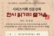 [ 포에버뉴스 김경순 기자 ] 안양시 석수도서관은 안양대학교 HK+사업단 지역인문학센터와 함께 시리즈기획 인문강좌의 일환인‘한시 읽기의 즐거움’ 강좌를 오는 11월 7일부터 12월 5일까지 운영한다고 17일 밝혔다. 이번 강좌를 통해 수강생들은 작사(作詞)와 작곡(作曲)의 특징을 동시에 지닌 한시(漢詩)의 형식미를 감상하고, 과거와 현재를 잇는 전통이 체현된 문화 텍스트로서의 한시 세계를 탐방한다. 석수도서관 관계자는 “석수도서관과 안양대학교 지역인문학센터가 협업하여 진행하는 이번 시리즈기획 인문강좌를 통해 시민들이 한시의 매력적인 세계를 깊이 탐구하고, 한시를 읽는 즐거움을 알 수 있길 바란다”고 밝혔다. 서울대학교 중국어문화연구소 책임연구원이자 한시 칼럼니스트 강성위가 진행하는 이번 강의는 10월 21일 10시부터 안양시도서관 홈페이지에서 접수하면 된다.