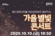[ 포에버뉴스 김경순 기자 ] 용인문화재단은 오는 10월 10일 오후 7시 30분, 새롭게 단장한 용인포은아트홀 야외광장에서 ‘가을 별빛 콘서트’를 개최한다. 이번 공연은 가을밤의 정취 속에서 시민들에게 특별한 추억을 선사하고, 용인의 대표 광장형 축제를 알리기 위해 마련됐다. ‘가을 별빛 콘서트’에는 가수 거미, 유리상자 이세준, 힙합 아티스트 행주·마린·블랙나인, 그리고 소프라노 정나리가 출연해 대중음악·클래식·힙합을 아우르는 다채로운 무대를 선보일 예정이다. 이번 공연은 무료로 진행되며, 사전 댓글 이벤트를 통한 예약석(현재 마감)과 공연 당일 현장 선착순 입장석으로 운영된다. 현장 참여자는 오후 5시부터 대기 후 오후 6시부터 선착순 입장할 수 있으며, 돗자리석과 계단석 등 다양한 방식으로 자유롭게 관람할 수 있다. 특히 이번 ‘가을 별빛 콘서트’는 시민 참여형 현장 이벤트도 마련됐다. 입장객 1,800명에게는 별 모양 무드등이 기념품으로 증정되며, 공연 전에는 중계 카메라 이벤트를 통해 용인포은아트홀 공연 티켓이 제공된다. 본 공연에 앞서 오후 4시부터 예술교육 매개자 ‘아트러너’가 운영하는 문화예술
