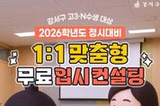 [ 포에버뉴스 김경순 기자 ] 서울 강서구가 2026학년도 대학 정시모집을 앞두고 관내 고등학교 3학년과 재수생, 학부모를 대상으로 ‘1대1 맞춤형 대입 진학 컨설팅’을 운영한다. 컨설팅은 오는 12월 20일부터 21일까지 이틀간 강서평생학습관(공항대로 615) 2층 강당에서 진행된다. 구는 정시모집 정보를 해석하고 전략을 수립하는 데 어려움을 겪는 학생과 학부모에게 실질적 도움을 제공하기 위해 이번 프로그램을 마련했다. 서울시교육청 대학진학지도지원단 소속 현직 교사 6명이 참여해 수험생의 학업 성향과 진로 목표를 분석하고 개인별 입시 전략을 제시한다. 상담은 오전 9시 30분부터 오후 2시 55분까지 총 6차로 운영되며, 1인당 40분씩 집중 상담이 진행된다. 수능 성적표와 진학 희망 자료 등을 토대로 학생별 강점과 지원 가능 대학 및 학과를 면밀히 분석해 최적의 입시 전략을 안내한다. 컨설팅은 총 72명을 대상으로 한다. 참여 신청은 오는 12월 9일 오전 10시부터 강서구청 누리집 통합예약시스템을 통해 선착순 접수한다. 접수가 완료되면 상담 일정이 문자로 개별 통보되