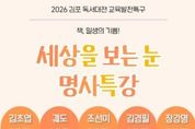 [ 포에버뉴스 김경순 기자 ] 김포시 도서관은 2026 김포 독서대전 교육발전특구 사업으로 '세상을 보는 눈, 명사특강'을 오는 5월 17일부터 10월 18일까지 5회에 걸쳐 관내 도서관 3곳에서 진행한다. 이번 명사특강은 문학·과학·교육·경제 각 분야의 저명한 저자를 초청해 세상을 바라보는 시야를 넓히는 인문 강연으로, 함께 배우며 공감하는 새로운 독서의 가치를 공유하고자 기획됐다. 강연은 ▲5월 17일 오후 2시, 마산도서관에서 소설가 김초엽의 ‘공상과학(SF), 다른 세계를 감각하는 법’ ▲6월 21일 오후 2시, 모담도서관에서 과학 콘텐츠 인플루언서 궤도의 ‘과학의 거대한 궤도’ ▲7월 19일 오후 2시, 장기도서관에서 아동심리 전문가 조선미의 ‘성장을 위한 좌절 내구력 키우기’ ▲8월 23일 오후 2시, 모담도서관에서 경제 전문가 김경필의 ‘돈쭐나는 경제 잔소리’ ▲10월 18일 오후 2시, 장기도서관에서 소설가 장강명의 ‘소설가가 먼저 본 미래’로 진행된다. 강연별 모집 일정과 자세한 내용은 김포시 도서관 누리집에서 확인할 수 있으며, 김포시 통합예약 누리집에서 선착순으로 신청할 수 있다.