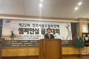 [ 포에버뉴스 사공선 기자 ] ‘제22회 진주시골프협회장배 챔피언십 골프대회’가 20일 진주컨트리클럽에서 100여 명의 선수 및 관계자들이 참가한 가운데 성황리에 개최됐다. 진주시골프협회가 주최·주관하고 진주시와 진주시체육회가 후원한 이번 대회는 골프 종목의 저변 확대와 골프 동호인들의 화합의 장을 마련하기 위해 열렸다. 경기는 학생선수와 프로선수를 제외한 진주시 거주 핸디 12 이내의 순수 아마추어 골퍼를 대상으로 남자선수권부와 여자선수권부로 나뉘어 스트로크 플레이 방식으로 진행됐으며 경기 결과에 따라 남자선수권부는 5위까지 여자선수권부는 3위까지 시상이 이뤄졌다. 진주시 관계자는 “협회장배 챔피언십 골프대회가 성황리에 개최된 것을 축하한다”며, “이번 대회를 통해 동호인 간의 우의를 돈독히 하고, 골프의 매력을 시민들에게 널리 알리는 기회가 되기를 바란다”고 말했다.
