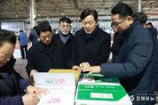 [ 포에버뉴스 이승훈 기자 ] 전북특별자치도는 설 명절을 앞둔 12일 새벽, 김관영 도지사가 전주시 농수산물도매시장을 방문해 과일 경매장을 중심으로 농산물 출하 동향과 가격 흐름을 직접 점검하고 현장 관계자들을 격려했다고 밝혔다. 이날 현장에는 우범기 전주시장과 전주원예농협 임종경 조합장, 농협중앙회 전북본부 김성훈 본부장 등이 함께했으며, 설 성수기를 맞아 거래가 활발히 이뤄지고 있는 과일 경매 현장을 둘러보며 품목별 출하 상황과 거래 가격을 세밀히 살폈다. 김 지사는 사과, 배, 딸기 등 명절 수요가 집중되는 주요 성수품을 중심으로 최근 기상 여건과 작황 영향, 산지 출하 물량 확보 상황, 소비 동향 등을 현장에서 확인하고, 유통 종사자들로부터 시장 운영 여건과 애로사항을 청취했다. 1993년 개장한 전주 농수산물도매시장은 연간 거래액 1,482억 원, 하루 평균 160톤이 거래되는 전북 농수산물 유통의 핵심 거점이다. 전자경매 시스템을 기반으로 신속하고 투명한 거래가 이뤄지며, 성수기에도 안정적인 유통 기능을 유지하고 있다. 김관영 도지사는 “설 명절을 앞두고 농산물의 원활한 공급과 가격 안
