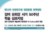 [ 포에버뉴스 김경순 기자 ] 인천연구원은 2026년 3월 21일 오후 2시 30분, 청라블루노바홀에서 “검여 유희강의 예술세계 재조명과 K-Culture로의 확장”을 주제로 '제13차 현장동행 정책대화'를 개최한다. 인천연구원이 2026년부터 본격 시행 중인 ‘현장동행 정책대화’의 일환으로 마련된 이번 행사는 검여 유희강 서거 50주년을 기념해 인천서구문화재단과 공동주관으로 개최되며, 그의 예술세계와 정신을 재조명하고 K-Culture로의 확장 가능성을 모색하는 학술 심포지엄으로 진행될 예정이다. 이날 개회식에서는 김성하 인천서구문화재단 대표이사가 개회사를, 강범석 인천광역시 서구청장과 최계운 인천연구원장이 축사를 맡는다. 이어 진행되는 첫 번째 발표에서는 박재복 경동대학교 국제융합학부 교수가 “검여 유희강의 위상 재정립과 예술정신 계승”을, 두 번째 발표에서는 안현정 성균관대학교 박물관 학예실장이 “검여 예술의 현대적 해석과 공공문화·동시대 활용 가능성 확장 논의”를 주제로 발표한다. 종합토론 사회는 전 경기도박물관 관장인 이동국 독립큐레이터가 맡으며, 토론에는 김창수 인하대학교 초빙교수,