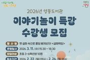 [ 포에버뉴스 박정배 기자 ] 양평군은 새 학기를 맞아 양동도서관에서 초등학생을 대상으로 운영하는 ‘이야기 놀이 특강’의 수강생을 오는 22일부터 26일까지 모집한다고 밝혔다. 이번 특강은 옛 설화 속 주인공이 되어 또래와 협력해 이야기를 만들어 보는 스토리텔링 프로그램이다. 시나리오 속에서 나만의 캐릭터를 만들고 싶은 초등학교 3~6학년 학생이라면 누구나 신청할 수 있다. 강좌는 3월 11일 오후 3시 30분부터 약 3시간 동안 참여형 프로그램으로 진행되며, 장소는 양동도서관 3층 강의실이다. 전진선 양평군수는 “앞으로 양동도서관이 어린이들에게 다양한 독서문화 프로그램을 제공하고, 이번 특강이 초등학생들의 문해력 향상에 도움이 되기를 바란다”고 전했다.